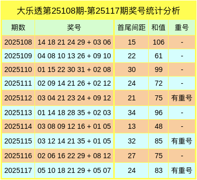 大乐透近十期奖号数据统计
