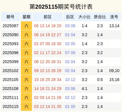 后区分析:上周星期六的后区号码开出01、05,属于质质数,本期预测开出合质数04、11。